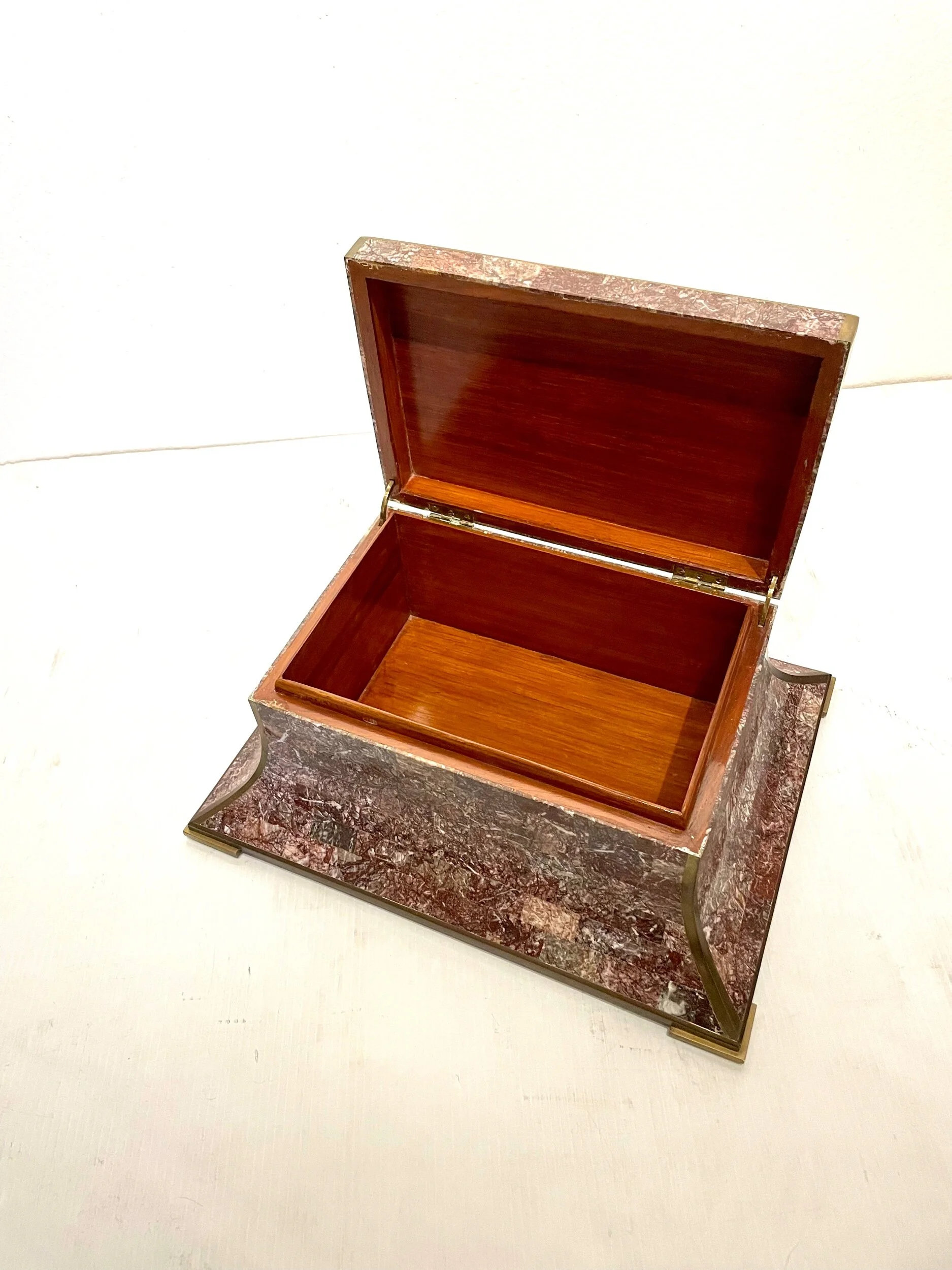 Elegant rare beautiful box by Maitland Smith in tessellated stone with brass accents. circa 1970s, great original condition beautiful mahogany inlaid.
