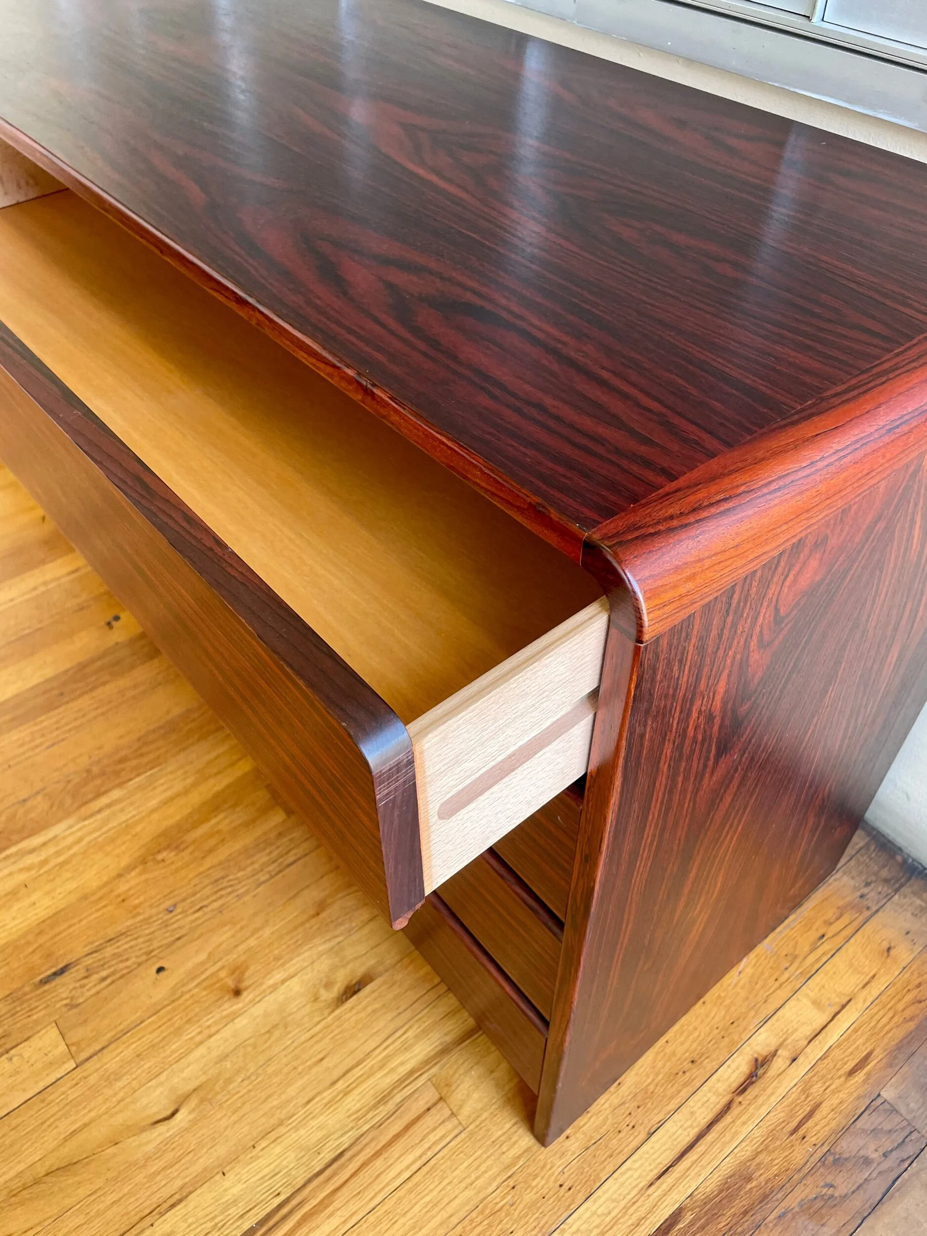 Categories: Select a Category Accessories Art Lighting Office Seating Storage Tables Storage Solid Iron and Leather Four Bottle Capacity Wine Rack by Arthur Umanoff $305.00 1960's Gilt Metal Faux bamboo Magazine Rack/ Record Holder $225.00 Rare Small Rosewood Cabinet by Poul Cadovious on chrome Legs $1,125.00 Danish Modern Teak & Maple Record Cabinet $990.00 Danish Modern teak Record Magazine Rack Holder by Brusksbo Mellemstrands $975.00 Low Console, Bench or Coffee Table by Greta Grossman for Glenn of California $1,895.00 Arne Wahl Iversen Danish Modern Secretary Desk Model-68 for Vinde Møbelfabrik $2,295.00 Danish Modern Rare Teak Petite Credenza Sideboard Buffet by H.P Hansen Denmark $2,850.00 American Contemporary Modern Solid Maple & Steel Credenza By Room & Board $1,750.00 Postmodern Danish Modern Teak Credenza / Brass Handles Dovetail Corners $2,800.00 Contemporary Elegant Nightstand End Table in Linen by Serena & Lily $595.00 Danish Modern Teak Tall Dresser Chest of Six Drawers $1,550.00 Danish Modern Nils Jonsson Teak Sideboard Credenza $3,200.00 Post Modern Rosewood File Cabinet by Sibast Mobler Design by Posborg & Meyhoff $695.00 Danish Modern Teak Wall Hanging Memo & Roll Top Tambour Door Box $395.00 1970's Chrome & Naugahyde 6 Bottle capacity Wine Rack Holder Space Age $175.00 Danish Modern Tall Boy Teak Dresser by VM Mobelfabrik $1,850.00 Lou Hodges California Mid Century Modern walnut Bookcase with Cabinet Wall Unit $2,250.00 Danish Modern Solid Teak Dovetail Multiuse Box with Drawer $265.00 Handcrafted Mexican Modernist Wood Jewelry Box $425.00 American Walnut Contemporary Custom Long Low Credenza $1,800.00 Mid-Century Modern Arthur Umanoff Solid Walnut Magazine Rack $245.00 Petite & Rare Jewelry Chest by Arthur Umanoff in Walnut & Brass Midcentury $1,395.00 Danish Modern Teak & Laminate Dry Bar with Removable Tray on Casters $1,150.00 Danish Modern Massive Large Teak Credenza $3,950.00 Danish Modern Stackable Solid Teak Double Decker Wine Rack 8 Bottles $185.00 American Mid-Century Modern Walnut Custom Made Bookcase $1,450.00 American of Martinsville Pair of Nightstands / Cabinets Hollywood Regency $2,450.00 American Mid-Century Restored Walnut Block Front Two Drawers Night Stands $2,250.00 Mid-Century Modern Solid Walnut Mens Valet by Ico & Luisa Parisi, Italy, 1950s $695.00 American Mid-Century Modern Tall Chest by Heywood Wakefield $1,550.00 American of Martinsville Nightstand / Cabinet Hollywood Regency $1,050.00 American Mid Century 1950s Petite Dresser with Marble Top by Vista of California $795.00 American Mid-Century Modern Rare Paul McCobb 8 Drawer Dresser & Drawer Extencion $6,250.00 Danish Modern Teak Credenza Tambour Doors Carlo Jensen for Poul Hundevad $1,995.00 Danish Modern Teak Extendable Bar Cart by Poul Hundevad $955.00 Danish Modern Rosewood 9 Drawer Dresser $2,450.00 Solid Tiger Oak Card Catalog Box with Brass Handle Dovetail Art Deco $395.00 Danish Modern Solid Teak Dovetail Multiuse Box with Drawer $295.00 Hollywood Regency Maitland Smith Large Tessellated Stone and Brass Box $1,125.00 Petite Bar Cart in Bentwood with Removable Tray in the Style of Alvar Aalto $525.00 Danish Modern Pair of Rosewood Tall Nightstands by Brouer Furniture Denmark $1,550.00 2 available - Danish Modern Rosewood Cabinets by Brouer Furniture $1,195.00 Pair of Brutalist Lane Chocolate Finish Mosaic Line Nightstands $2,295.00 Danish Modern Solid Teak Cabinet by Peter Hvidt and Orla Molgaard-Nielsen $2,250.00 Mid-Century Modern Solid Mahogany Mens Valet by Ico & Luisa Parisi, Italy, 1950s $1,350.00 Danish Modern Atomic Age Iron & Teak Magazine Rack $395.00 American Mid Century Modern Nine Drawer Dresser in Walnut $2,750.00 American Mid-Century Modern Drexel Dresser by John Van Koert $1,975.00 American Mid Century Modern Walnut Bookcase Desk Wall Unit $2,275.00 Danish Modern Small Tambour Desk Top Teak Box $155.00 Danish Modern Rosewood 8 drawer Dresser by Westnofa $2,450.00 American Mid Century California Design Small Bookcase by Vista $725.00 Danish Modern Dry Mini Bar Cabinet in Rosewood by Dyrlund $2,250.00 Danish Modern 3 Drawer Dresser in Walnut $1,195.00 P&P 900 Modular Wall Mounted Storage System by Michel Ducaroy for Line Roset $8,700.00 American Mid Century Modern Solid Oak Credenza California Design $1,690.00 American Mid-Century Modern Record Holder Caddy 60 Record Capacity $145.00 Petite Danish Modern Teak Vanity Desk $1,175.00 Catch All Leather Desktop Organizer $150.00 Rare 3 Piece Vanity Dresser Set Designed by Paul Mccobb Calvin Group $6,900.00 Art Deco Waterfall Floor Radio Case in Walnut $750.00 Danish Modern Teak 12 Bottle Wine Rack or Holder by Nissen Langaa $190.00 Solid Iron & Leather Four Bottle Wine Rack $225.00 Pair of Mid-Century Modern Nightstands by Kalpe California Design $1,400.00 Danish Teak and Glass Low Bookcase / Cabinet by Gunni Omann $1,395.00 Three Drawer Jewelry Chest by Milo Baughman $2,750.00 1970s Rattan and Glass Tea Cart $595.00